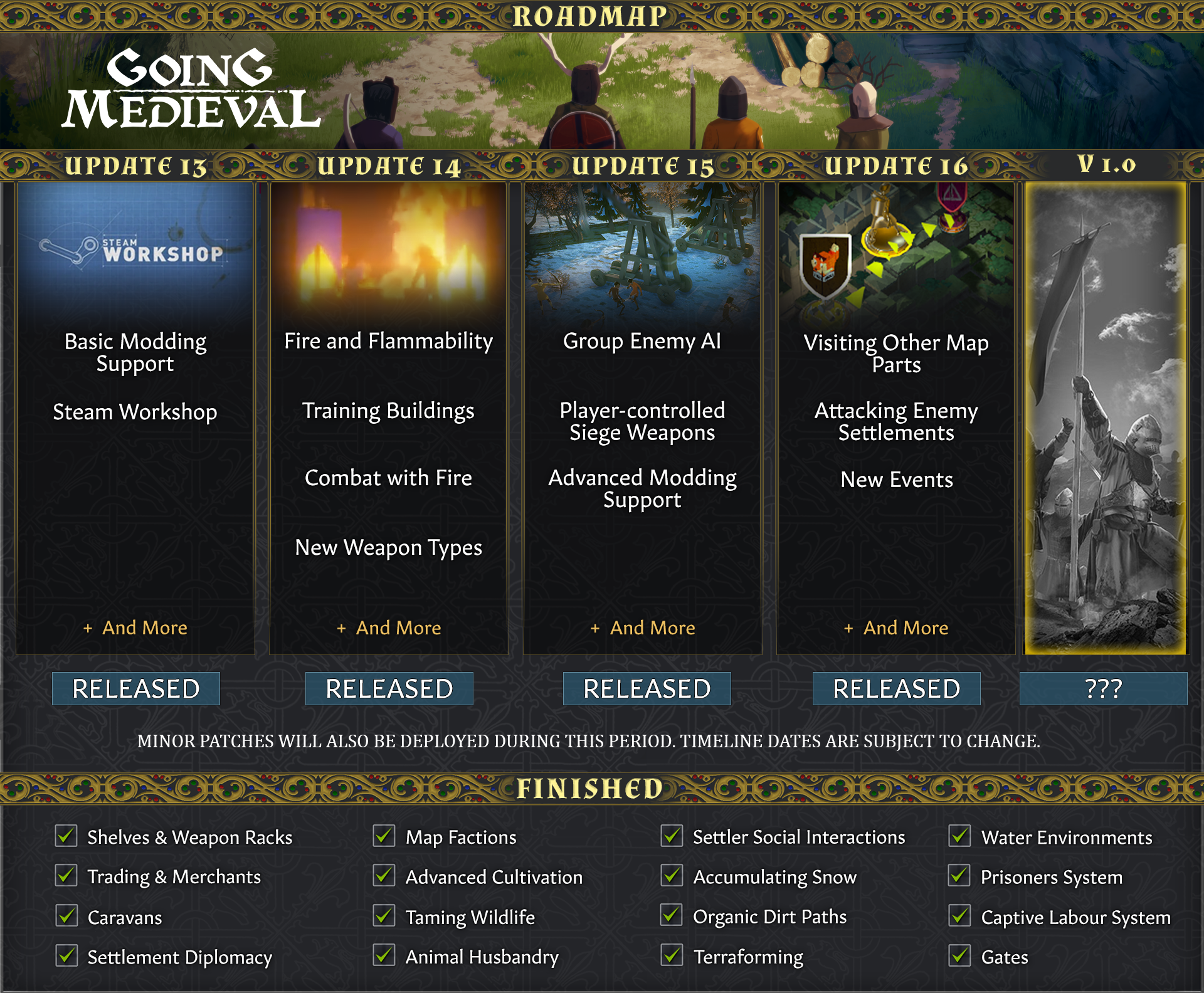 So, all the core mechanics and systems are in, but we are not done yet as we want to incorporate long awaited features, upgrade existing mechanics and incorporate more content. This is our road to 1.0 and what awaits you on that journey.